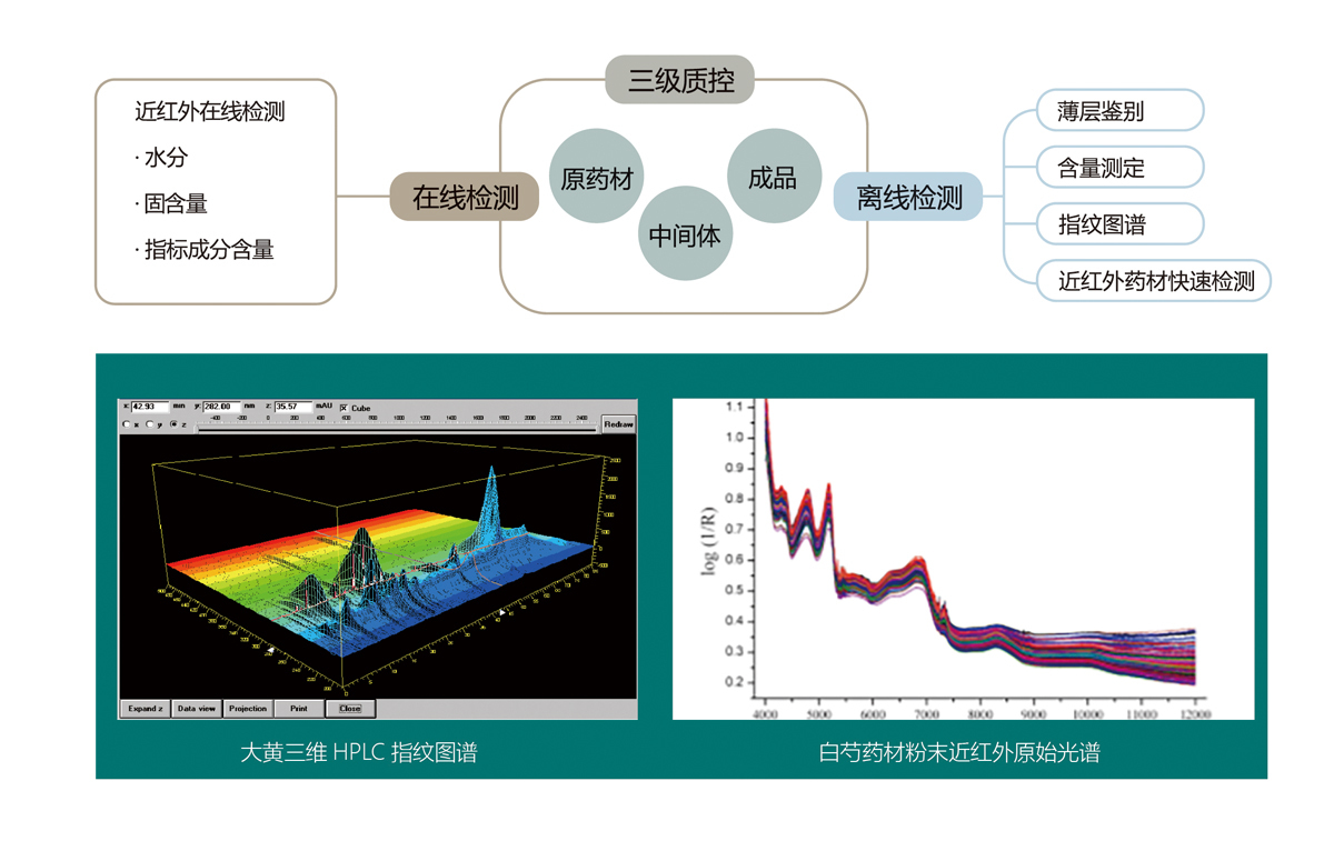 采用高效液相色譜、特征圖譜或指紋圖譜及近紅外檢測等核心檢測技術(shù),進(jìn)行在線及離線雙重檢驗(yàn),對原藥材、生產(chǎn)過程中間體及成品進(jìn)行三級質(zhì)量監(jiān)控,保證從源頭到成品的完整質(zhì)量傳遞。確保產(chǎn)品安全、有效、穩(wěn)定、可控。